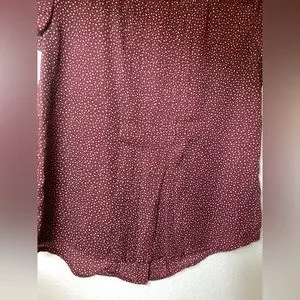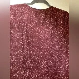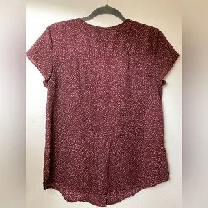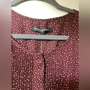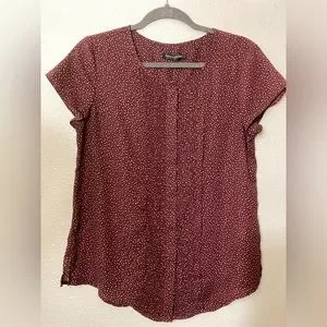 Brand New with Tags. Banana Republic SS Blouse Maroon with Tan Speckles. Tailored with Pleats on front & back. Would not show on this pattern so I added picture of exact blouse in cream to show details. Size Small.
