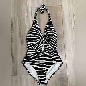 Vince Camuto L121118 Women’s Zebra Tie Front Halter One-Piece Swimsuit Size 10