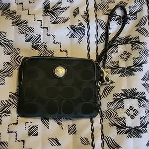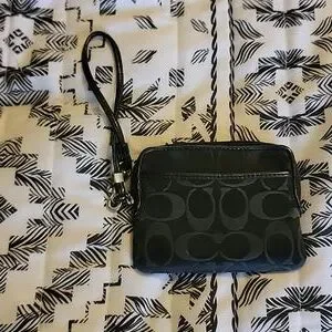 gently used black coach wristlet. inside has a zipper pocket and 4 credit card slots