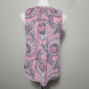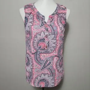 Talbots Pink & Blue Paisley Sleeveless Blouses Size MP