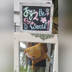 NWT Natural Life rainbow happy face pillow mustard yellow tufted throw pillow
