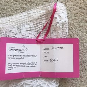 Purchased in Positano, Italy. Italian lace, lined and gorgeous! Waist is 16.6” laying flat and has a drawstring.