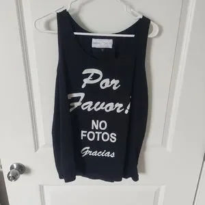 Unique tank that reads "Please no photos thanks" in Spanish...size 8/10.