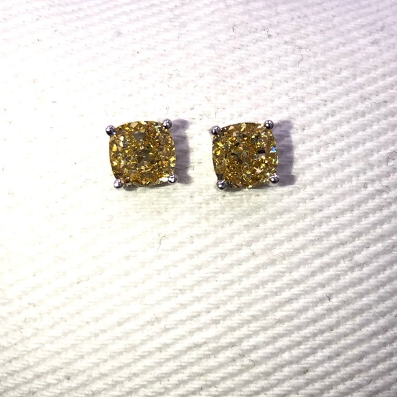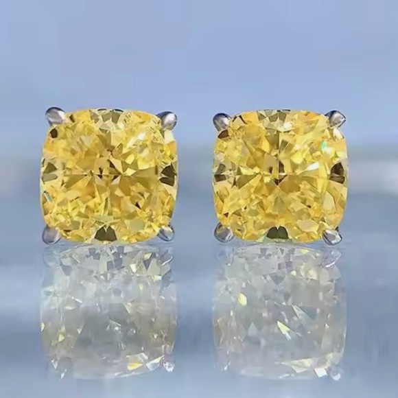 2ct Canary Cushion Cut Studs