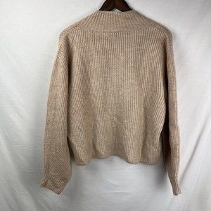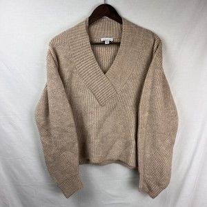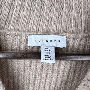 TopShop Women’s Beige Knit V Neck Sweater Balloon Sleeves Size 12