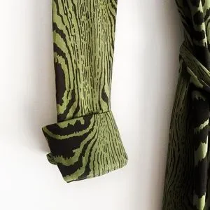 DIANE VON FURSTENBERG Printed Silk Knee-Length Dress in rare colour & woodgrain pattern with cuffed sleeves. Perfect for a party or the office.