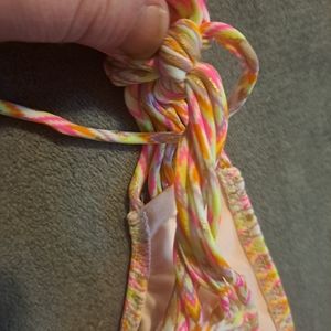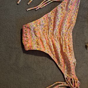Shade & Shore Pink Aztec Shiny Padded Bikini 34C w/tassle scrunch Small bottoms