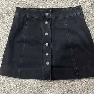 Polished snaps run the length of this classic stretch-denim miniskirt that makes a great swap-in for your favorite jeans.