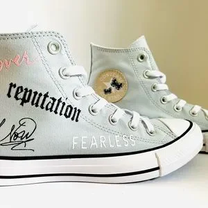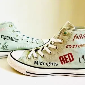 Converse High Top Grey Customs. These Taylor Swift shoes are authentic straight from Converse. Stunning in person , with all the Taylor Swift album covers. Perfect gift for a Swifty. Machine washable canvas upper. A must have for the Taylor Swift Concert.