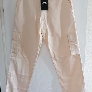 Boohoo Mens Chino Trousers Size M 34 W 31 L Chino Style Cargo Stone Colour