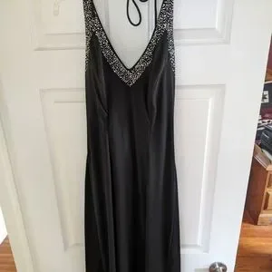 Blondie nights long black dress with sequins v-neck around to the back size 7