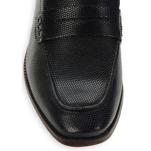 STEVE MADDEN Ancher Leather Penny Loafers Stylish penny loafers crafted from textured leather.Stand-out in the crowd sporting the Ancher penny loafer from Steve Madden. All-over micro embossed details on the upper give this leather loafer a stylish look while the lightly threaded rubber out-sole improves grip to let you walk with confidence.