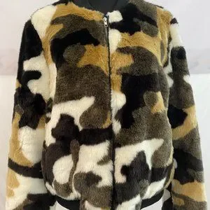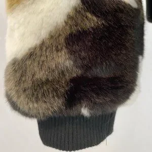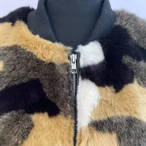 Super cute bomber styled black, brown, beige & white animal print faux fur jacket. Full zip front with side slash pockets and cuffed sleeves. Snugly warmth and plenty of style with this gorgeous jacket. Brand new without tags, never worn and zero flaws. Outer shell is 60% acrylic & 40% modacrylic. Lining is 100% Polyester. Obviously, this is dry clean only piece.