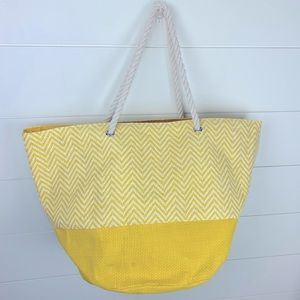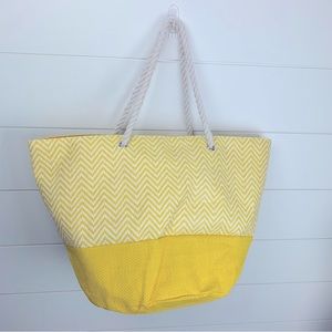Beach Bag Tote Yellow Chevron Size 14” x 24”