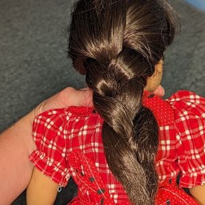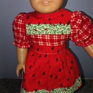 Original pleasant girl doll from the 90's. Normal use with play. A little bit of red color on the plastic legs/arms likely due to storage in a red dress. The shoes have a little more wear, likely due to age and storage. I don't think the watermelon dress is from American girl but the shoes are. Message with questions. #American #girl #pleasant #company #girloftoday #doll #molly