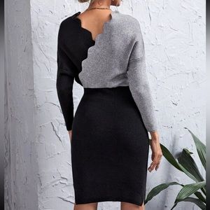 Multicolor elegant colorblock scallop split wrap rib-knit v neck long sleeve drop shoulder high waist thigh slit slim fit slight stretch 100% polyester not sheer machine wash or professional dry clean