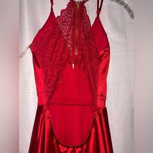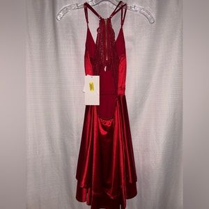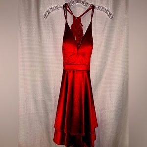 Silk Red Cocktail Dress with Lace Back. Honey and Rosie XS
