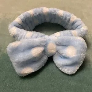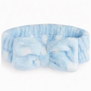 LIGHT BLUE AND WHITE POLKA DOTS PLUSH SPA HEADBAND