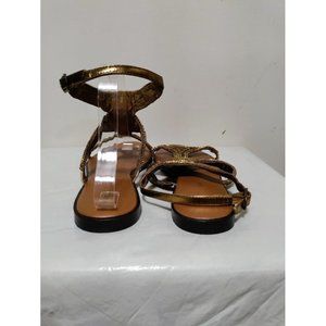 Zingara Womens Metallic Gold Sequins Open Toe Flat Sandals Size 38/7.5