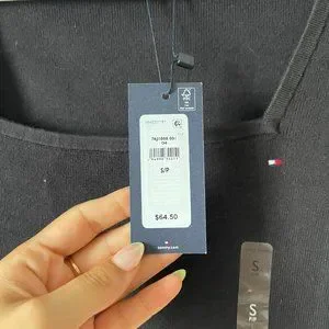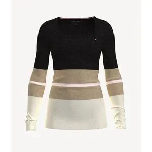 NWT Tommy Hilfiger Essential Stripe Square Neck Sweater In Black Size S