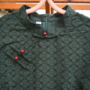 【SOLD】Dark Green Flora Qipao Midi Dress - Chinese Traditional Cheongsam