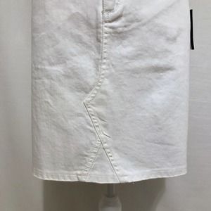NWT. Mini Jean Skirt for Women Various Sizes. Zipper and button for closure, 5 pockets design, has loops, white wash, seam design middle front and back. Crop top and necklace are not included. Pictures are part of description.
