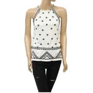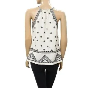 Stylish tank top with black geometric patterns. Lightweight and perfect for casual wear. Features a relaxed fit.