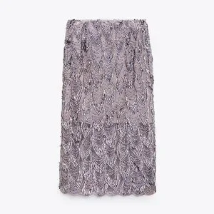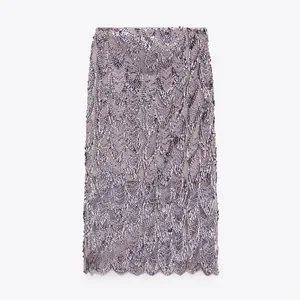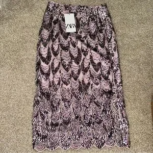 Zara Sequin Midi Skirt in Purple Sz XS