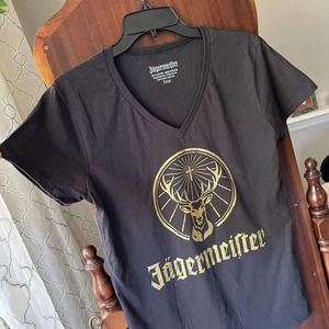 New! Jager Jagermeister Large V-neck women’s T-shirt black gold