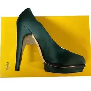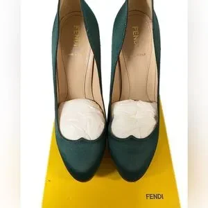 Fendi Hunter Green Satin Deep Platform Heels