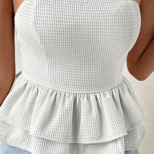 White Womens Frenchy Bow Back Ruffle Hem Tube Top