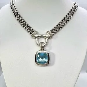 David Yurman Albion 14mm Blue Topaz Pendant Enhancer
