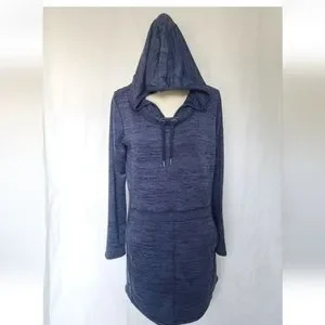 Athleta Blue Heathered Hooded Sweater Dress Medium Long Sleeve Pockets
