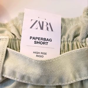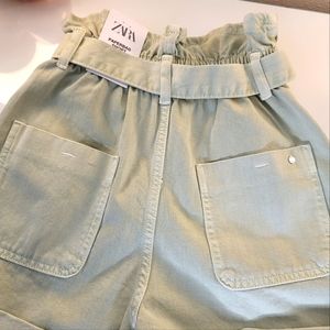 new with tags Zara paperbag high-rise rigid shorts with belt-tie waist. size 32. perfect condition