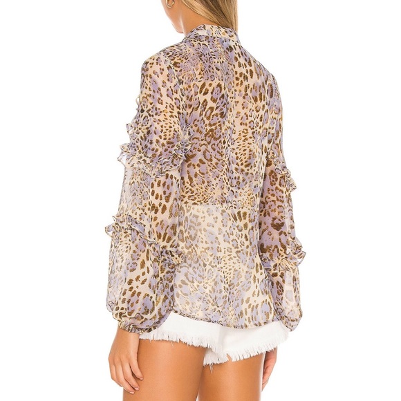 Leopard print button up blouse. Tan and light purple colored. Super light and comfortable fabric!