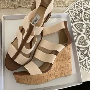 Steve Madden wedge heel. Only tried on never ended up wearing due to ankle injury. No issues on wedge. Super cute and comfy