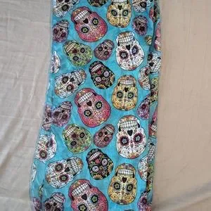 Turquoise sugar skull scarf 60" long