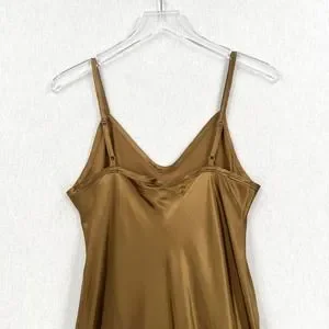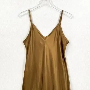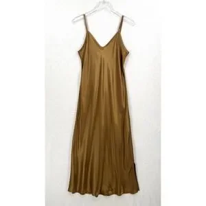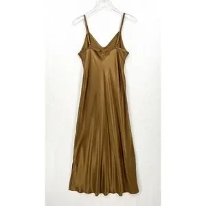 ENZA COSTA Dress Womens Medium Bronze Fatigue Satin Bias Slip Maxi Spaghetti Strap NWOT