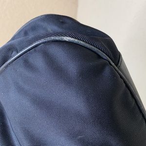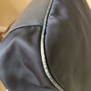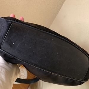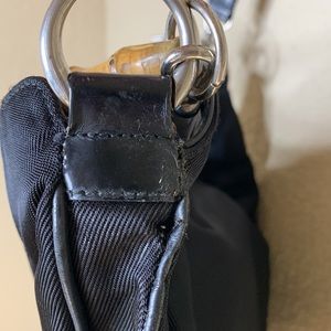 Gorgeous vintage black nylon 2-way Gucci bag. Has both the bamboo and the longer cross body strap. (Removable). Very clean on the side, does show some wear to the corners, see pics. The leather trim and strap does have some wrinkling but no cracks. Lots of life left. Looks really cute with the green & red Gucci crossbody strap too!