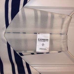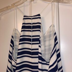 LIMITED EDITION from EXPRESS, part of their International Travel line, is a well-made ‘Barcelona Cami’ in classic Navy Blue + White, lined with a lightweight layer, a cute open-back peekaboo slit, and camisole spaghetti straps (Size: Small S)
