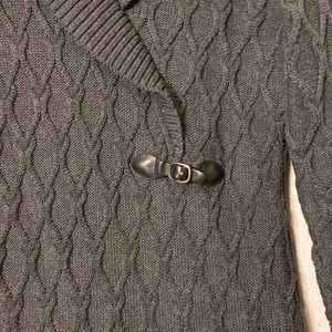 EUC Faux wrap Calvin Klein sweater dress with collared neck. Beautiful knit pattern creates texture throughout this long sleeve dress. beautiful condition I do not see any snags or flaws. A few pet hairs.