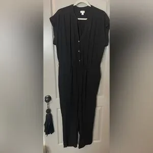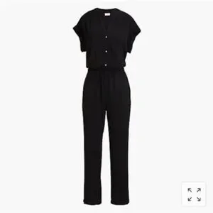 ew J Crew Size Large Black Cuffed Camp Shirt Jumpsuit Womens Button Pockets