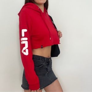 FILA heritage red cropped spell out hoodie, Size S ❤️