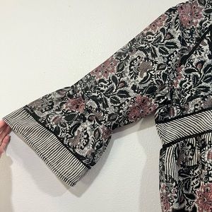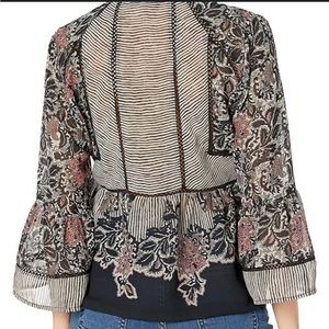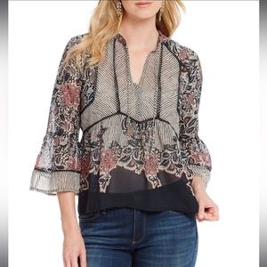 NWT Lucky Brand Boho Mixed Print Top 3/4 Bell Sleeve