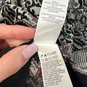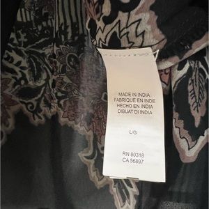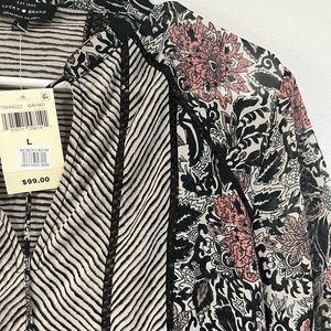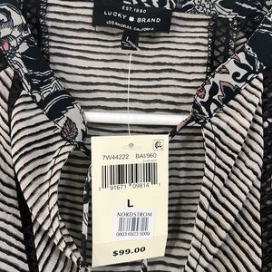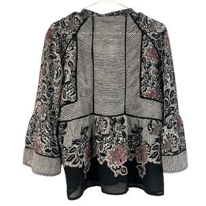 NWT Lucky Brand Boho Mixed Print Top 3/4 Bell Sleeve Floral Striped Black Sz L