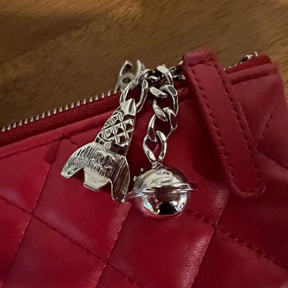 Chanel Lambskin clutch with Paris Eiffel tower charms. Bought in Italy! Made in Italy. GREAT condition. Comes with authenticity card and box! In red! Amazing condition :)