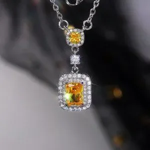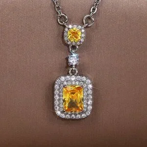 🌸Bling Double Royal Yellow Zircon Silver Plated Necklace for Women, UNVN12412