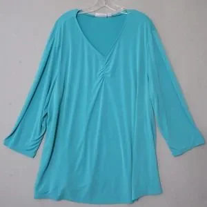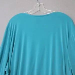 Susan Graver Top Blouse Women Plus 2X Blue Liquid Knit Long Sleeve Slinky V Neck