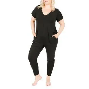 Smash + Tess Sunday Romper Short Sleeve V-Neck Ankle Midnight Black Small