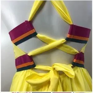 This gorgeous dress features a long, flowing skirt that is lined with a handcrafted embroidered top. The back is open and has elastic features for extra room on the waist. The dress is long I am 5’9 for reference in the pictures above. It is 100% rayon and lightweight. This dress would be perfect for Easter, Wedding, bridal shower, brunch or vacation